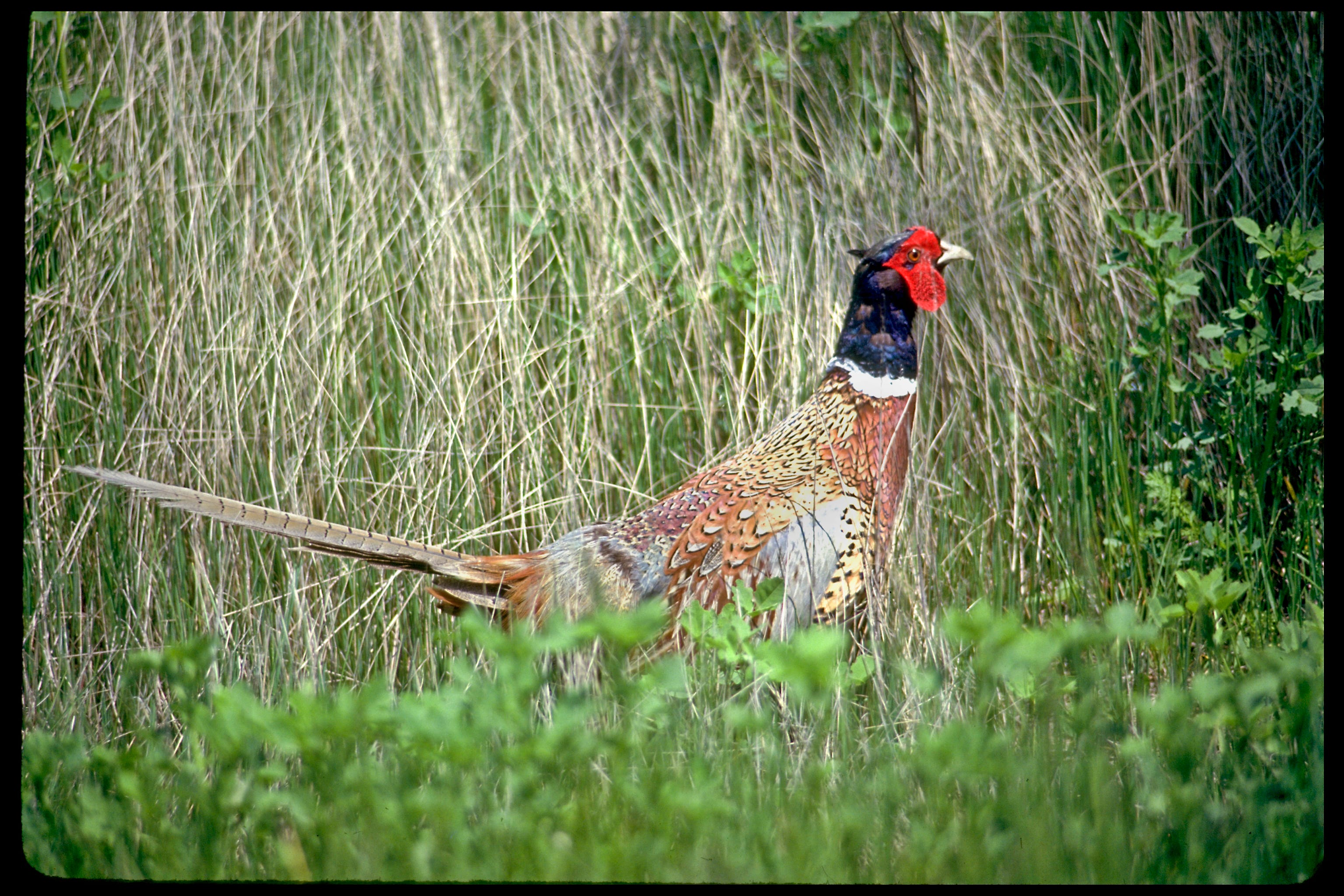 Ring-Necked Pheasant. (Taken from the passenger seat of a car.) Robert J. Huffman. Field Mark Publications.